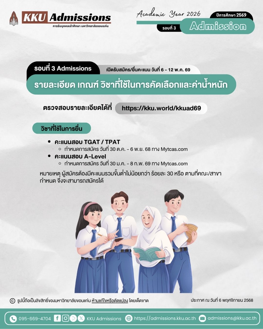 ตรวจสอบรายละเอียดได้ที่: https://kku.world/kkuad69