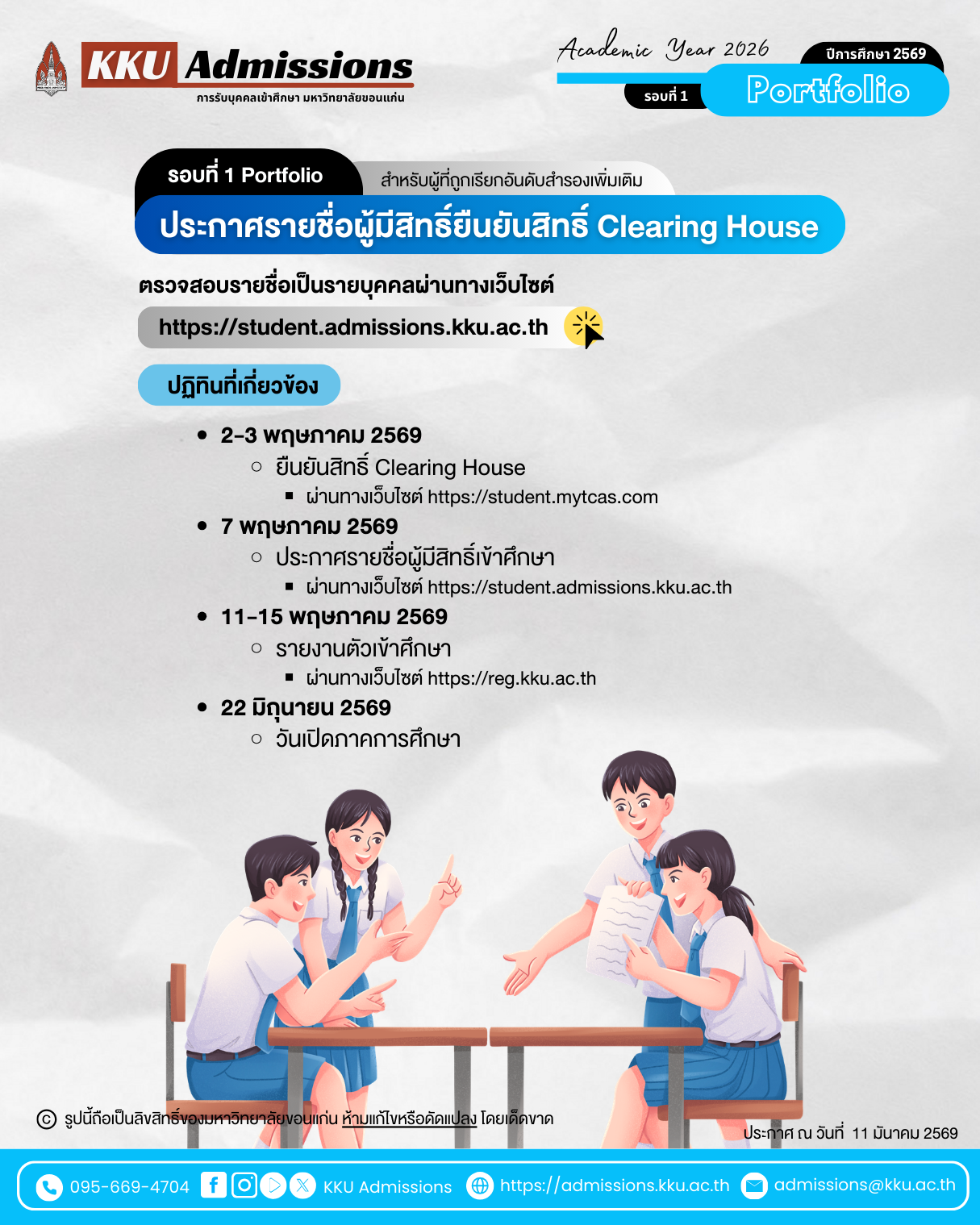 รอบที่ 1 Portfolio: ประกาศรายชื่อผู้มีสิทธิ์ยืนยันสิทธิ์ Clearing House (สำหรับผู้ที่ถูกเรียกอันดับสำรองเพิ่มเติม)