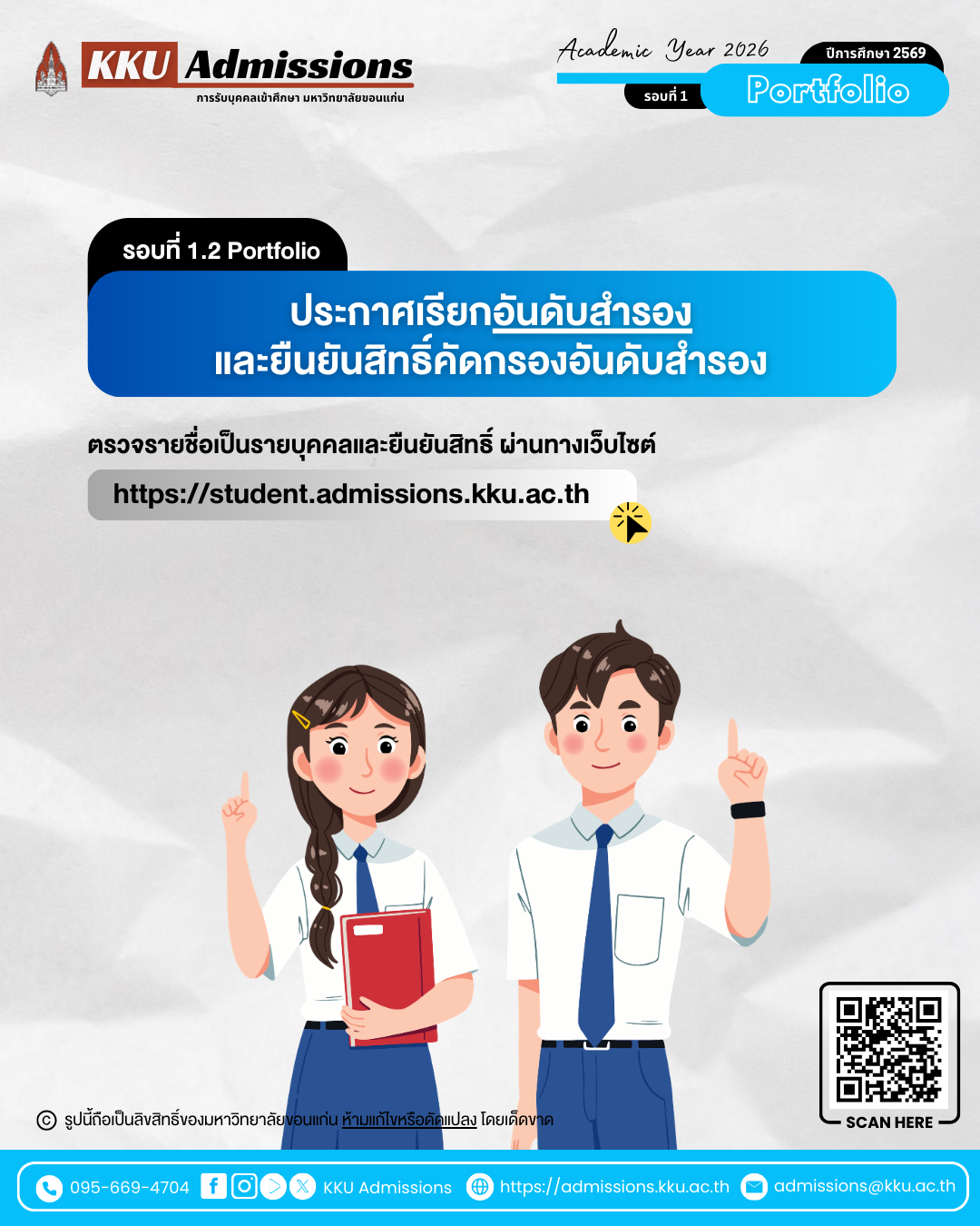 รอบที่ 1.2 Portfolio ประกาศเรียกอันดับสำรองและยืนยันสิทธิ์คัดกรองอันดับสำรองภายใน มข.