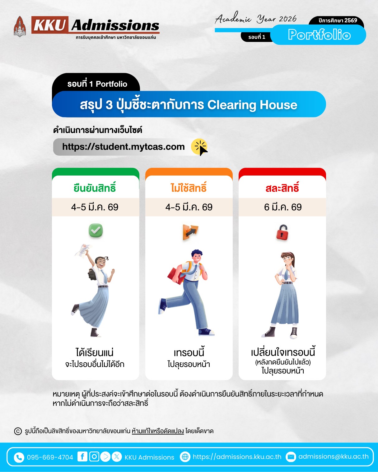ยืนยันสิทธิ์ผ่านทางเว็บไซต์ https://student.mytcas.com