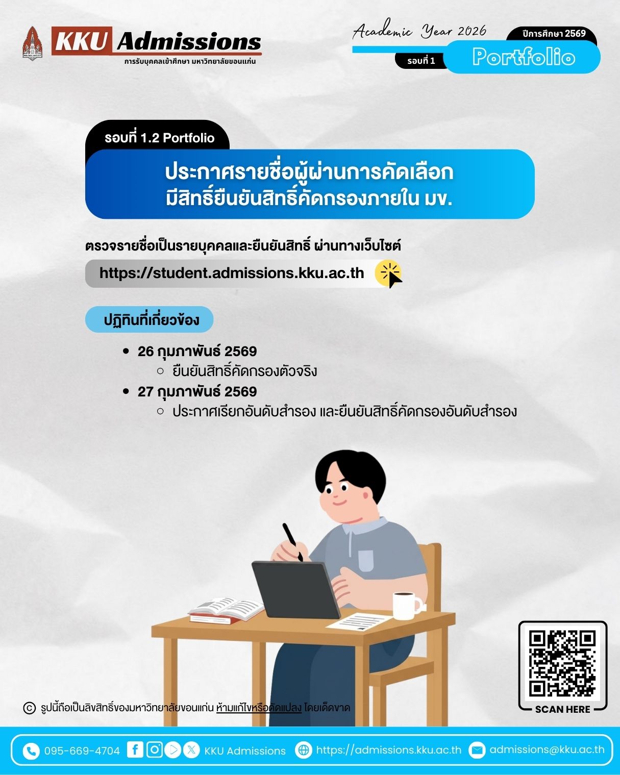 รอบที่ 1.2 Portfolio ประกาศรายชื่อผู้ผ่านการคัดเลือกมีสิทธิ์ยืนยันสิทธิ์คัดกรองภายใน มข.